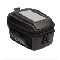 The M2 is an 8L tank bag with a 2.5” expansion joint that allows the bag to expand and store up to 12L of volume. Made from single shot molded PU with Carbon Fiber graphics, this bag is water resistant, features a see-through phone window, power cord port, internal removable storage pouch and shoulder strap. Extremely versatile, this bag is both a daily and travel workhorse.