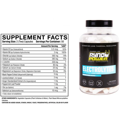 Ryno Power's ELECTROLYTES are a high-performance electrolyte blend of Sodium Chloride, Tri-Sodium Citrate, & Sodium R-Lipoate.